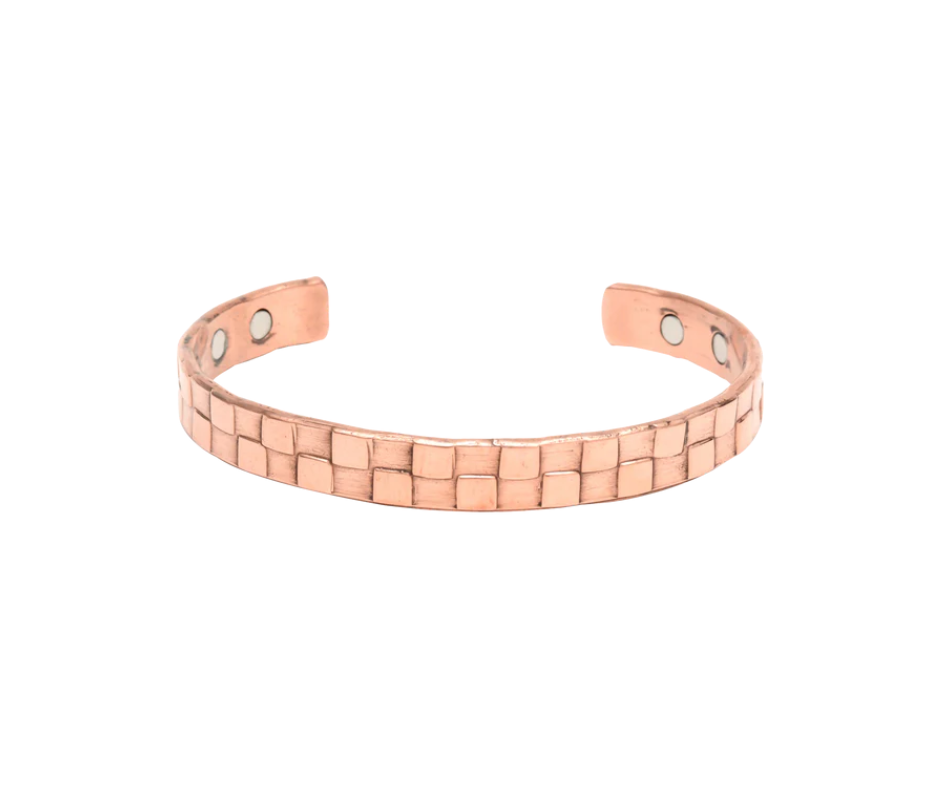 Elegancka i tradycyjnie wykonana miedziana bransoletka z delikatnymwzorem i wbudowanymi magnesami. Wykonana z wysokiej jakości miedzi, łączy w sobie piękno biżuterii z prozdrowotnymi właściwościami, inspirowanymi Ajurwedą.