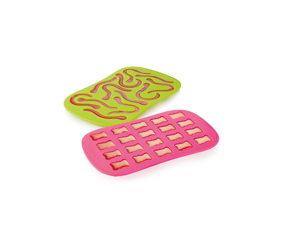 Obie silikonowe foremki są doskonałe do przygotowywania domowych żelek w kształcie niedźwiadków i dżdżownic bez użycia konserwantów, sztucznych barwników i zbędnych słodzików.
