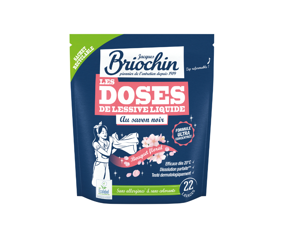 Kapsułki do prania Briochin na bazie szarego mydła o zapachu kwiatów to nowoczesne i wygodne rozwiązanie do codziennego prania. Skoncentrowana formuła łączy moc szarego mydła z delikatnym, kwiatowym aromatem, zapewniając doskonałe rezultaty prania nawet w niskich temperaturach.