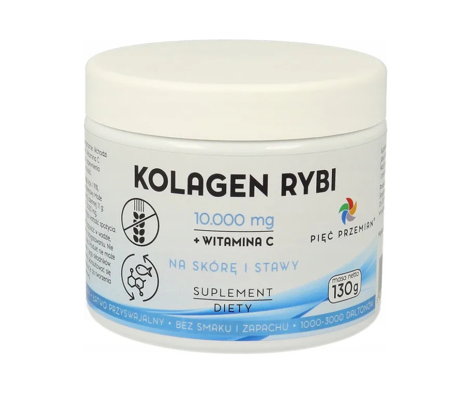 Rybi peptyd kolagenowy (zwany również hydrolizowaną żelatyną rybną lub po prostu peptydem kolagenowym) jest otrzymywany na skutek hydrolizy żelatyny ze skór ryb morskich. To czysty, naturalny składnik zawierający ponad 94% białka (w przeliczeniu na suchą masę), który zawiera 18 aminokwasów.