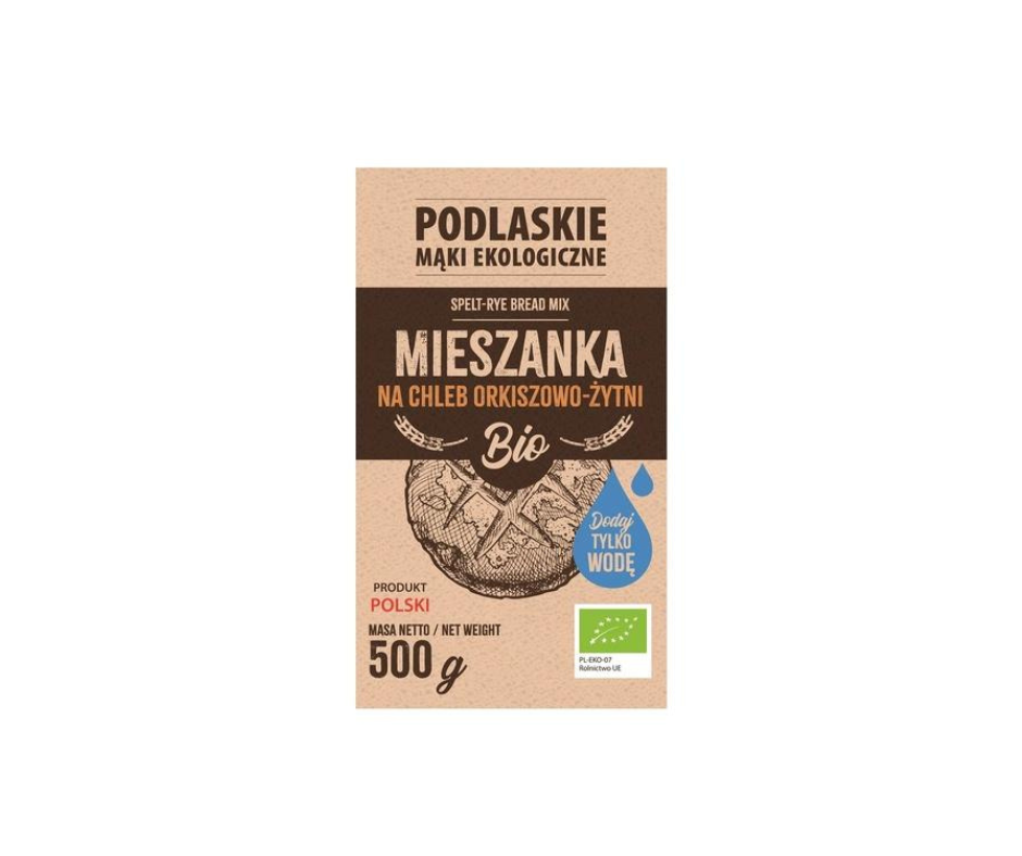 mąka z PSZENICY ORKISZ chlebowa*, mąka ŻYTNIA chlebowa*, zakwas ŻYTNI*, drożdże*, sól. (*certyfikowany składnik ekologiczny)