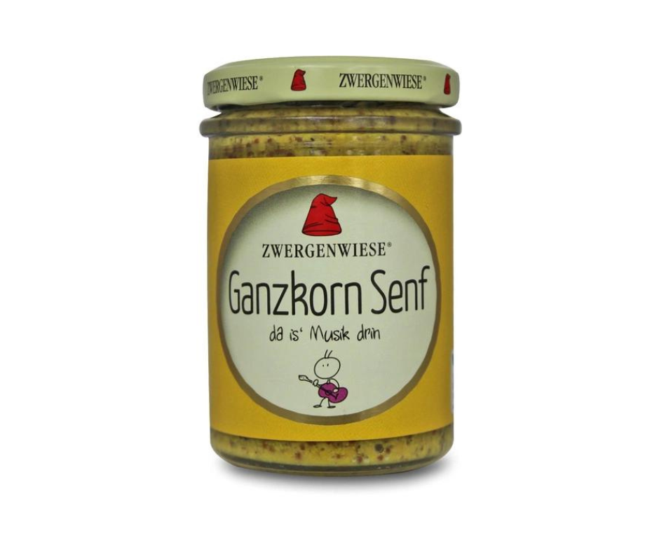 Ekologiczna musztarda z całymi ziarnami bez dodatku cukru, z aromatycznymi przyprawami takimi jak goździki, imbir i kurkuma.