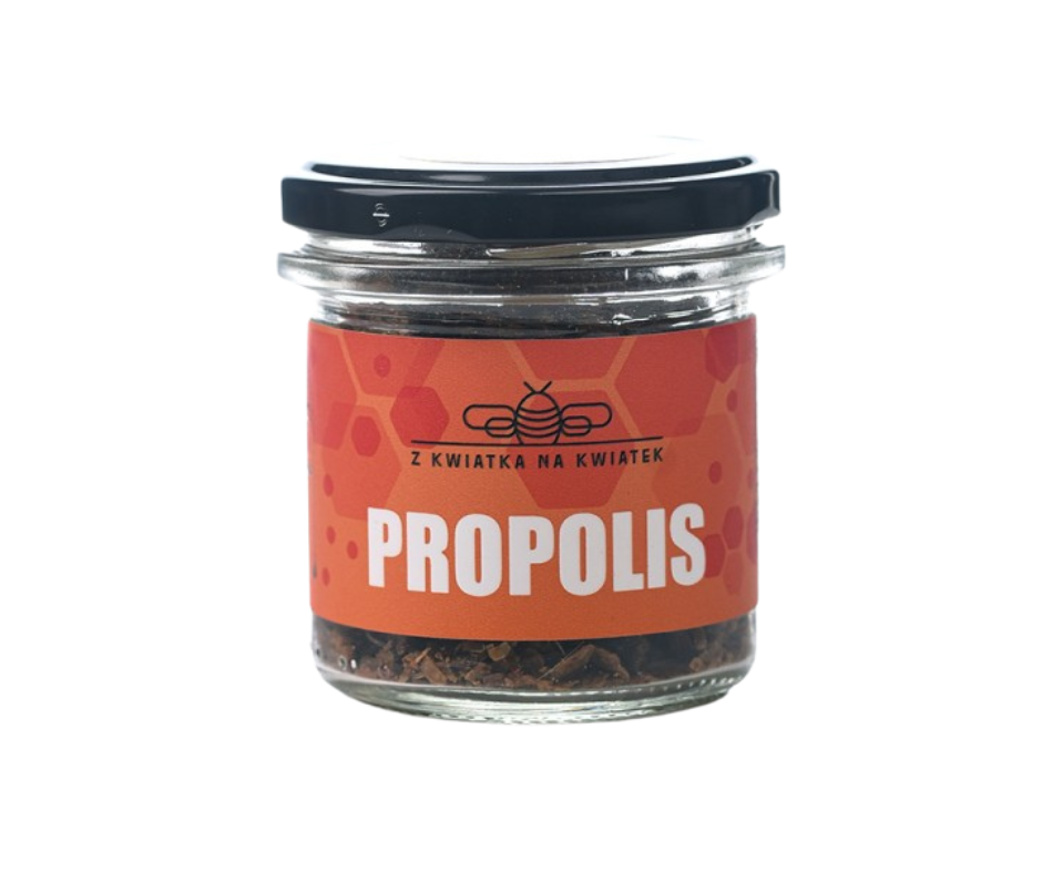 Propolis zabezpiecza ul przed groźnymi drobnoustrojami – wirusami, grzybami i bakteriami. To dobroczynne działanie propolisu możemy wykorzystać, żeby naturalnie wesprzeć własny organizm, zwłaszcza jesienią i zimą. Propolis ma postać twardych zbitych grudek i wyjątkowy, intensywny zapach.