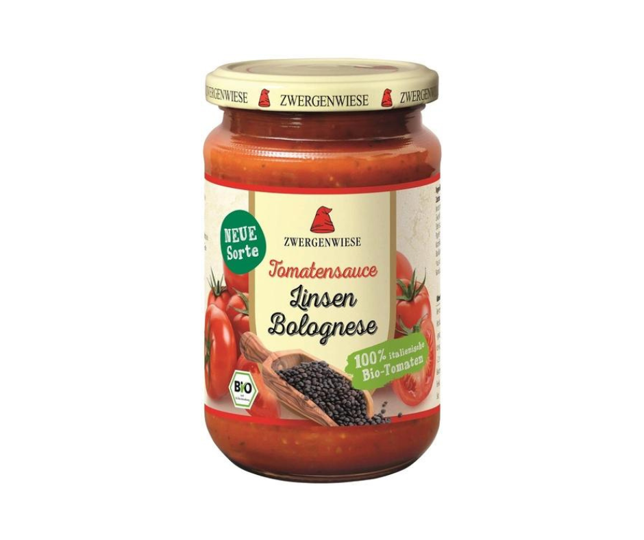 pomidory* 37 %, przecier pomidorowy*, soczewica* 7 %, woda, SELER*, marchew*, cebula*, syrop z agawy*, olej słonecznikowy*, sól kamienna, sok cytrynowy z koncentratu soku cytrynowego*, papryka*, sos SOJOWY* (woda, ziarna SOI*, sól kamienna), skrobia ziemniaczana*, pietruszka*, oregano*, bazylia*, pieprz*, czosnek*. (*certyfikowany składnik ekologiczny)